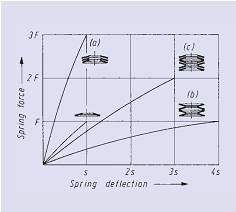 與其它類型彈簧相比,碟型彈簧具有如下特性: